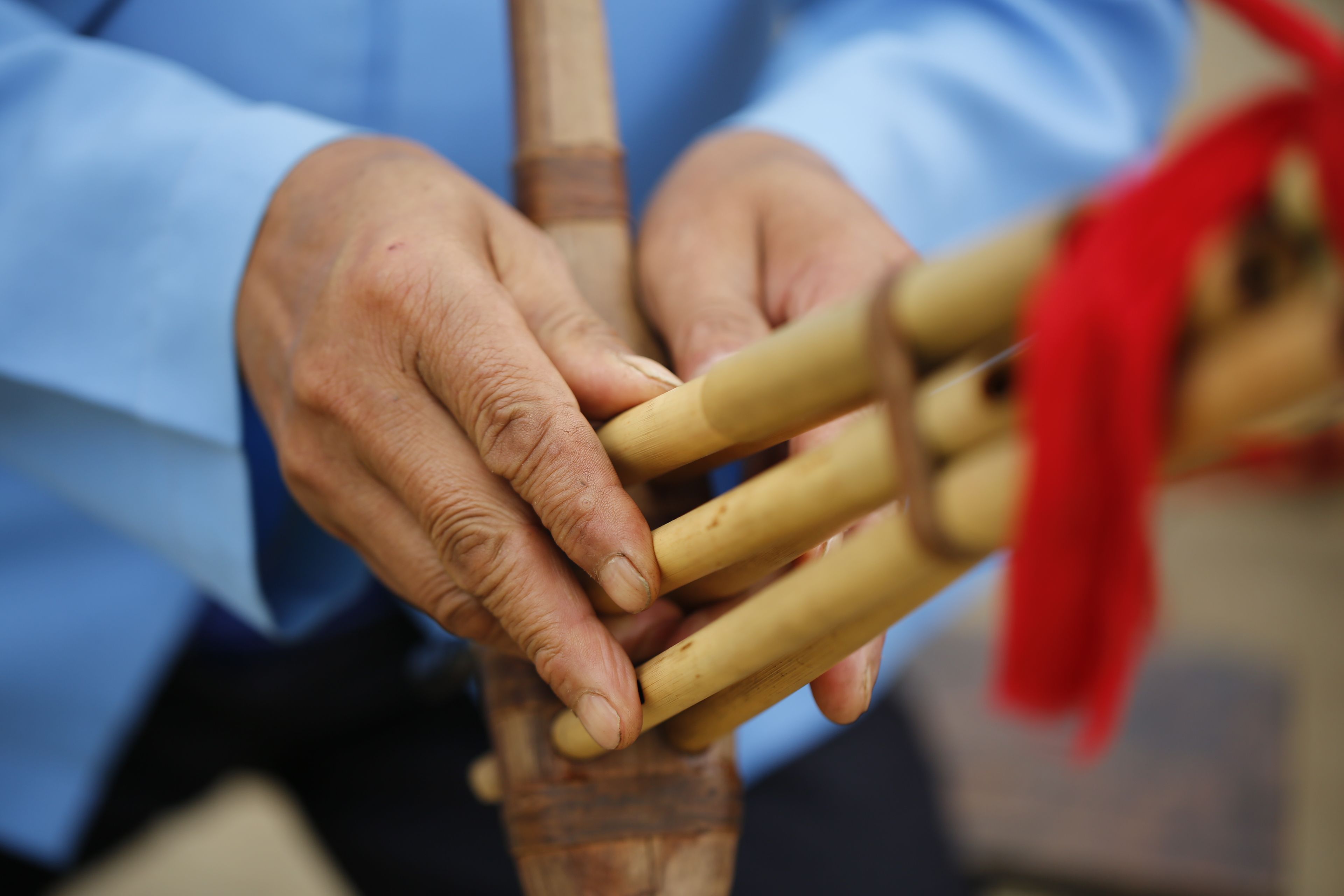 苗族花鼓舞傳承人鄧開倫教授他人吹奏蘆笙4