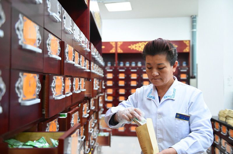 內(nèi)蒙古國(guó)際蒙醫(yī)醫(yī)院蒙藥師在藥房抓藥