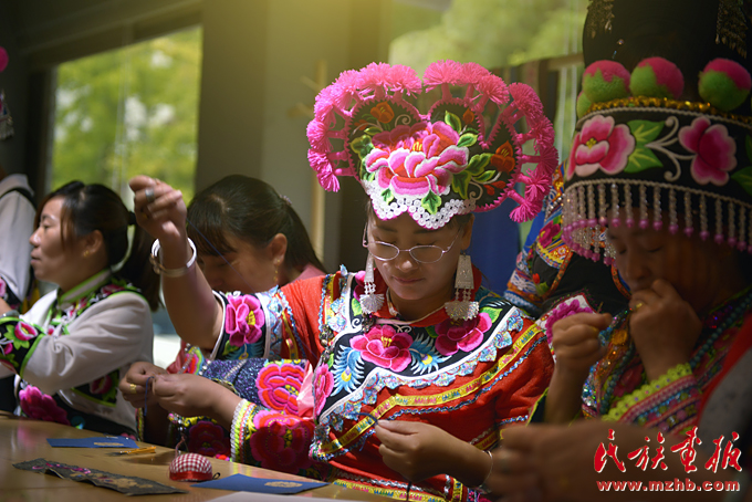 不忘初心,方能遠(yuǎn)行。在上下求索創(chuàng)意民族服飾的同時(shí),盧潔瑩不忘致力于彝族傳統(tǒng)文化的發(fā)揚(yáng)與傳播。2016年起,索玉文化美學(xué)創(chuàng)意有限公司與楚雄市婦聯(lián)、彝繡協(xié)會(huì)共同主辦的,旨在幫助楚雄山區(qū)彝族婦女用傳統(tǒng)手工技藝精準(zhǔn)扶貧的培訓(xùn)項(xiàng)目“彝繡之夢(mèng)”已開展了兩年?!皠?chuàng)業(yè)不易,要致富也要帶動(dòng)各族同胞一起致富。”盧潔瑩說,“我們的培訓(xùn)班每年都開辦,就是要幫助繡女們走出大山,走進(jìn)大眾的視角,提供一個(gè)給她們展示與發(fā)掘精美彝繡技藝的平臺(tái)?!?/p>