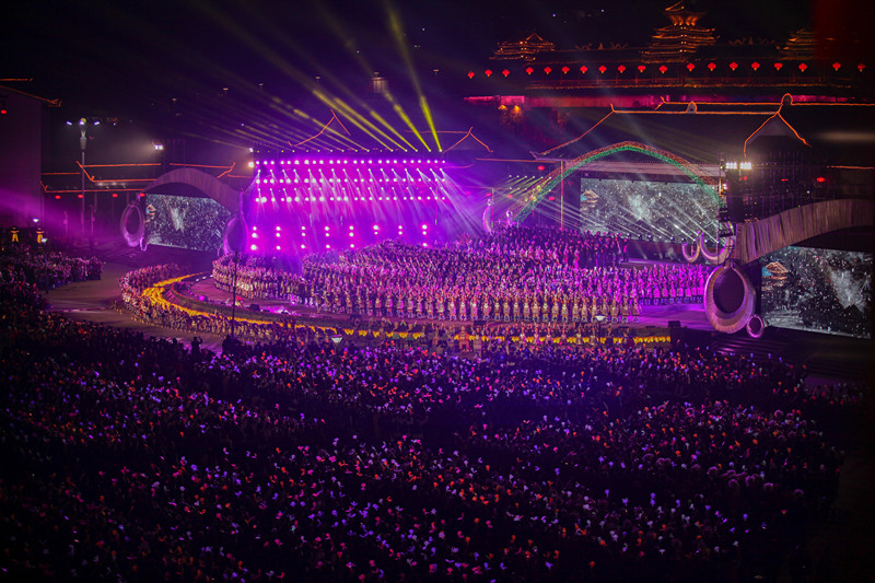2017年12月18日,中國(guó)侗年暨第八屆侗文化旅游節(jié)在貴州省黎平縣開幕,萬(wàn)人同唱侗族大歌 (瞿宏倫 / 攝)