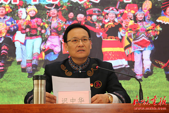 楚雄州委副書記、楚雄州人民政府州長遲中華介紹楚雄彝族自治州基本情況和自治州成立六十年來經(jīng)濟(jì)社會(huì)發(fā)展的輝煌成就等情況