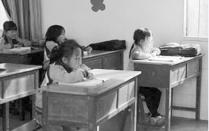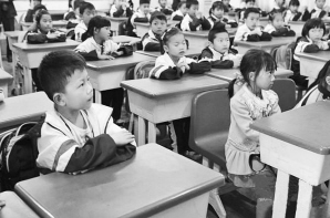 7歲的李曉彤(右)在華山小學教室晨讀。