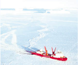 “雪龍”號(hào)是中國(guó)最大的極地考察船,也是中國(guó)唯一能在極地破冰前行的船只?!把垺贝秃芤?.5節(jié)航速連續(xù)沖破1.2米厚的冰層(含0.2米雪)。簡(jiǎn)單來(lái)說(shuō),“雪龍”號(hào)船底有許多密封艙,破冰時(shí)先把后部的密封艙用幾千噸的海水灌滿;這樣船頭自然翹起,壓騎至冰面之上;然后再把前部的密封艙灌滿海水,后部的海水排出,利用船體前部的巨大壓強(qiáng),把堅(jiān)冰壓裂破開(kāi)。