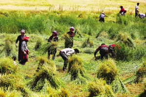 我們沿著湖畔徜徉,不經(jīng)意間步入了一片牧場(chǎng),只見一群牦牛在吃草,遠(yuǎn)處的崗日嘎布雪山神奇而壯麗。雪山的冰雪融水構(gòu)成了然烏湖主要的補(bǔ)給水源,然烏湖向西蜿蜒十余千米逐漸收縮成一道河谷,旁邊有一處藏族的小村莊,美得好像世外桃源一般,這就是傳說中的瓦巴村。村民們依湖而居,湖邊的平地是他們的牧場(chǎng)和田埂。散落在這里的幾戶人家,屋旁都插著顏色各異的經(jīng)幡,隨風(fēng)陣陣擺動(dòng)。