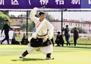 貢曲才旦獲得西藏自治區(qū)第四屆民族傳統(tǒng)體育運動會古朵項目比賽冠軍。