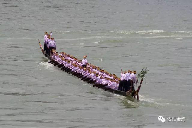 此外,最耀眼的還是女子龍舟隊(duì)。她們的龍舟比男隊(duì)的更華麗,船身涂黃色的龍鱗,龍頭上伸出兩對長而彎曲的象牙,栩栩如生。