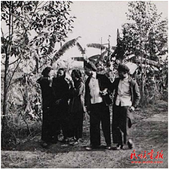 “歌圩”是桂西壯族古老的風(fēng)俗。每年農(nóng)歷正月、二月、四月都有歌圩日。圖為1957年廣西壯族自治區(qū)憑祥市郊區(qū)的歌圩日,這里不但處處歡歌笑語,還有搶花炮、演壯戲、舞彩龍、舞彩鳳、唱桂劇等很豐富的文娛活動