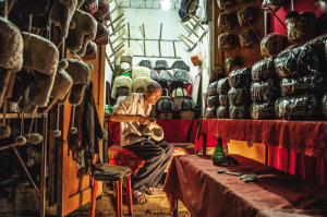 阿布都瓦克·吐爾洪老人,今年63歲,他是阿熱亞路帽子巴扎的手工藝人,店里出售的羊羔皮帽都是他親手制作的。1998年見到他的時候,他的鋪?zhàn)臃浅:喡窒锼闹軌m土飛揚(yáng)。在巴扎工作近30年,老人見證了喀什古城的發(fā)展變遷。