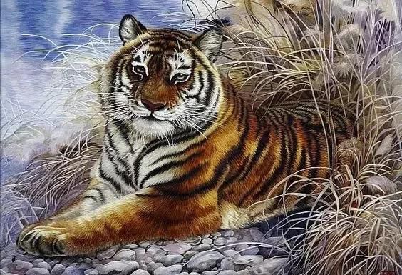 湘繡的圖案借鑒了中國畫的長處,所繡內(nèi)容多為山水、人物、走獸等,尤其是湘繡的獅、虎題材,形象逼真,栩栩如生。
