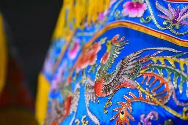 龍鳳褂裙,為女子出嫁與善終之時所穿之物。本作品采用精細(xì)金銀線配以潮繡墊高技法,繡制龍鳳圖案多達(dá)70余只,成為褂裙等級中的最高規(guī)格“褂王”。