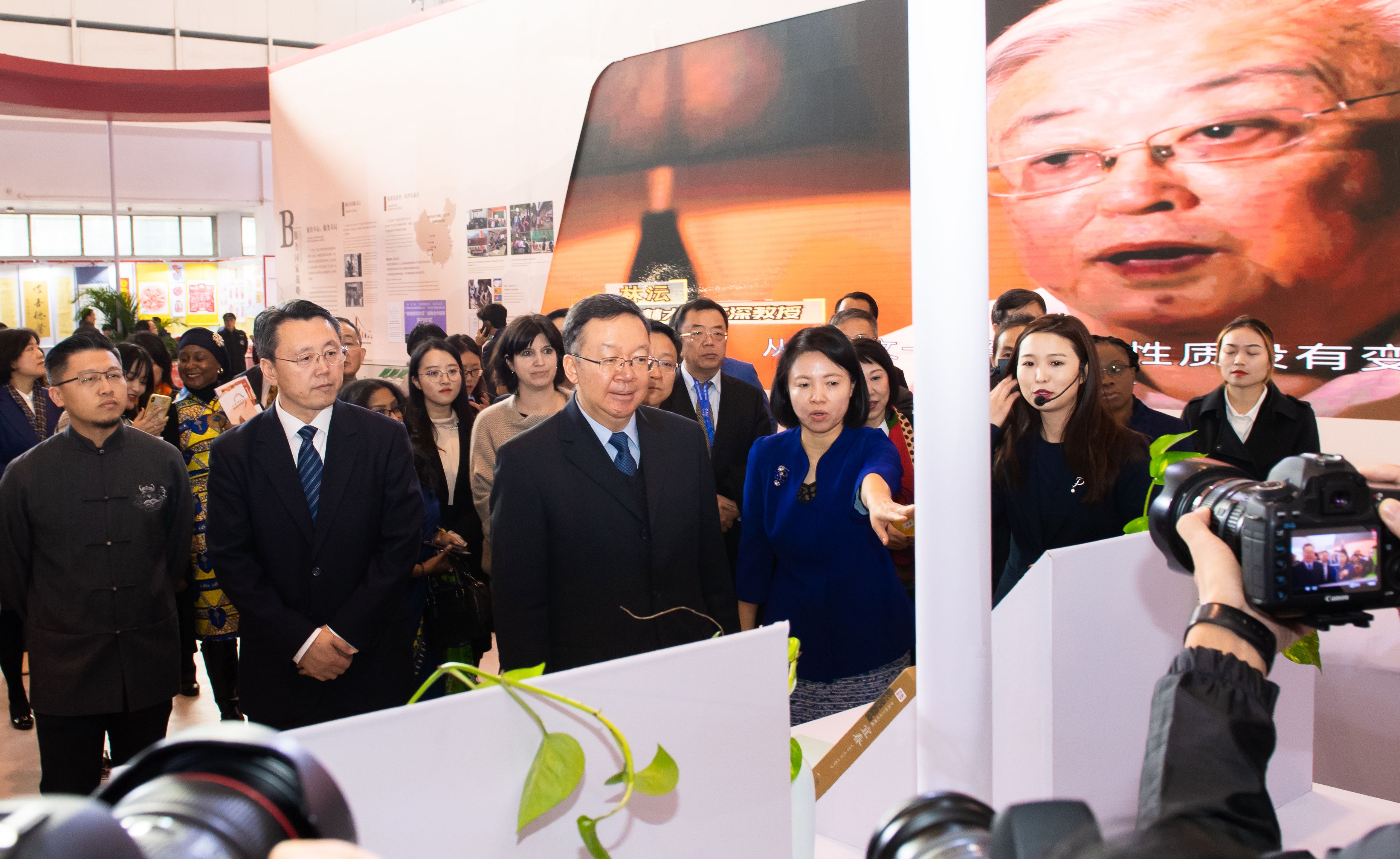 10月25日,教育部副部長、國家語委主任田學(xué)軍出席第三屆中國北京國際語言文化博覽主論壇——“語言智能與語言多樣性”國際語言文化論壇開幕式,并在開幕式后赴中國國際展覽中心巡展,在現(xiàn)場聽取了“新中國成立七十周年語言文字事業(yè)發(fā)展成就展”介紹,參觀了科大訊飛、京津冀協(xié)同發(fā)展展區(qū)、粵港澳大灣區(qū)展區(qū)、廣西語委展區(qū)以及語言科技、語言出版、語言創(chuàng)意展,在語言藝術(shù)展演區(qū)欣賞到由首都師范大學(xué)外國留學(xué)生演出的詩詞吟誦,并在成就展”簽名樹”上簽名。