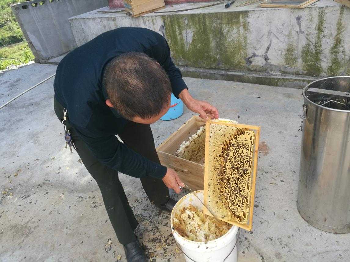 關(guān)于養(yǎng)殖、采集方面,當(dāng)?shù)刂饕ㄟ^駐村干部監(jiān)管,養(yǎng)殖合作社的貨源引進(jìn),技術(shù)幫扶等開展養(yǎng)殖管理。一年中主要進(jìn)行兩次季節(jié)性采蜜,養(yǎng)殖期間每周一次開箱檢查,以保證蜂筒內(nèi)蜜蜂的正常產(chǎn)蜜,到氣候適宜之時,以不同于以往的割取方式,采用先進(jìn)的搖蜜機(jī),開采蜂蜜,從而能夠不破壞蜂筒中的蜂乳及蜂皮,保證母蜂的正常產(chǎn)蜜。采集完成之后,通過低溫避光的方式,放入冷凍室低溫保存,隔絕會發(fā)生化學(xué)反應(yīng)的金屬與氣味污染,從而保證蜂蜜的新鮮。