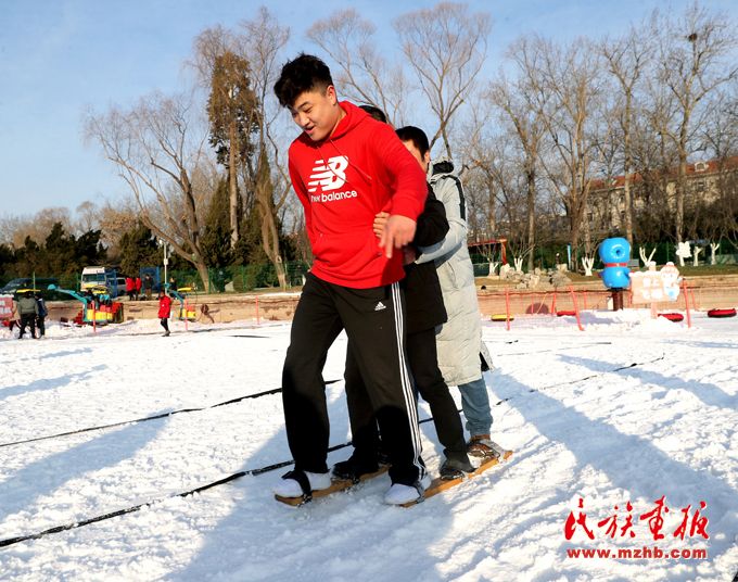 為了更好地將冰雪趣味健身賽事、冰雪健身體驗(yàn)活動(dòng)等送到全市各族群眾身邊,北京市民族傳統(tǒng)體育協(xié)會(huì)創(chuàng)造性地將綾球、高腳競(jìng)速及板鞋競(jìng)速等少數(shù)民族傳統(tǒng)體育項(xiàng)目與冬季冰雪相結(jié)合,整理、發(fā)展了雪地綾球、雪地高腳、雪地板鞋等項(xiàng)目,在現(xiàn)場(chǎng)進(jìn)行展示交流,吸引大批群眾熱情參與。
