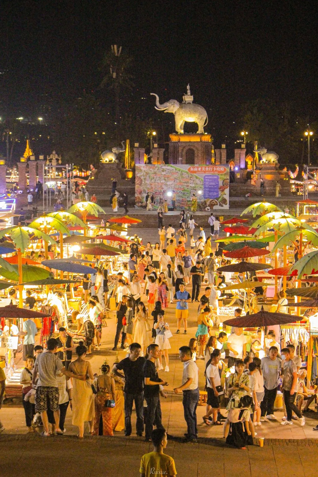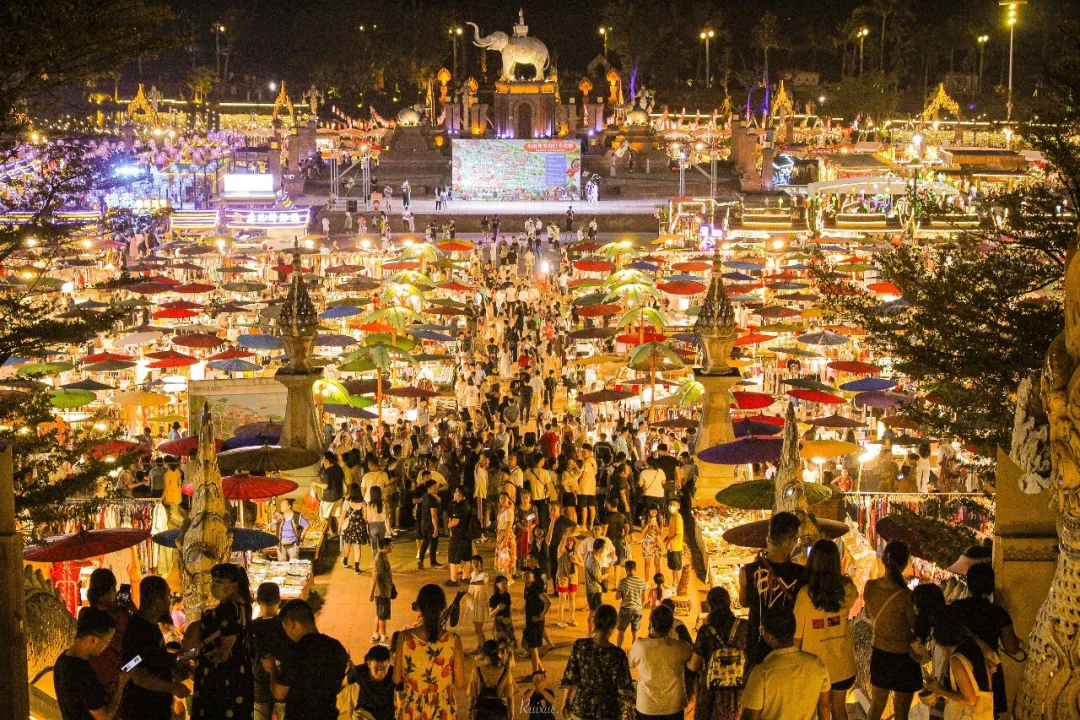 夜幕降臨,告莊西雙景星光夜市上千個特色攤位紛紛開始營業(yè),與壯美的瀾滄江江景交相輝映,成為西雙版納的新地標(biāo),熱帶夜生活風(fēng)情的最佳體驗地。