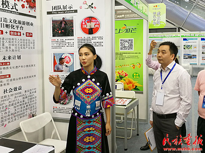 鐘億靈在“創(chuàng)青春”中國青年創(chuàng)新創(chuàng)業(yè)大賽中為嘉賓做項目講解。