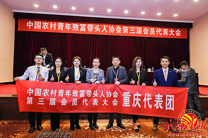 鐘億靈(左二)參加中國農(nóng)村青年致富帶頭人協(xié)會第三屆會員代表大會。