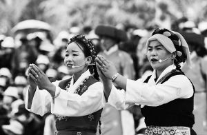 又逢拉薩藏戲演出季,傳統(tǒng)八大藏戲之《朗薩雯蚌》近日在西藏自治區(qū)拉薩市龍王潭公園拉開(kāi)帷幕。出演這部藏戲的民間藏戲隊(duì),來(lái)自有著300多年傳唱藏戲歷史的措麥村,30多名演員都是土生土長(zhǎng)的措麥村農(nóng)民。