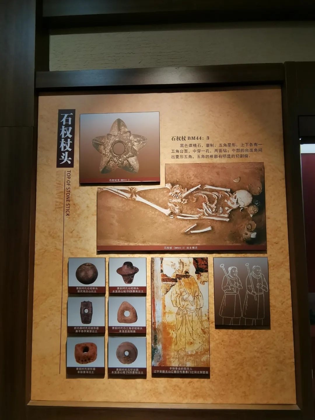 部落結(jié)構(gòu);南寶遺存中發(fā)現(xiàn)一件青石制成的石權(quán)杖首和一批與相關(guān)的玉制品引人注目,這些應(yīng)是部落酋長或具首領(lǐng)身份的聚落成員標(biāo)志,反映出南寶聚落已經(jīng)出現(xiàn)等級差別。遺址中發(fā)現(xiàn)的四個完整骨角質(zhì)冠飾,出土?xí)r均套箍在遺骸頭顱上,顯然是一種帽子,是戴冠人特殊身份和地位的象征。