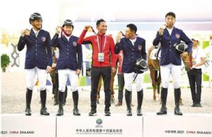 西藏競技馬術(shù)隊(duì)在第十四屆全運(yùn)會(huì)馬術(shù)三項(xiàng)賽團(tuán)體賽中奪得冠軍。