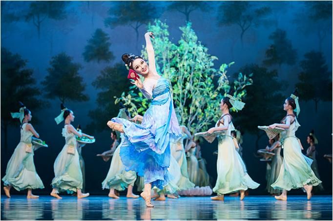 舞劇《傳絲公主》以蠶絲為戲劇元素,以蠶桑女寧兒與于闐王子尉遲的愛情為外在線索,以盛唐時中原與西域的交流往來為隱伏線索,將凄美的愛情故事與壯闊的家國情懷交織在一起,引領(lǐng)觀眾穿越到大唐盛世,感受繁興的絲路文化和豐富多彩的民族風(fēng)情。