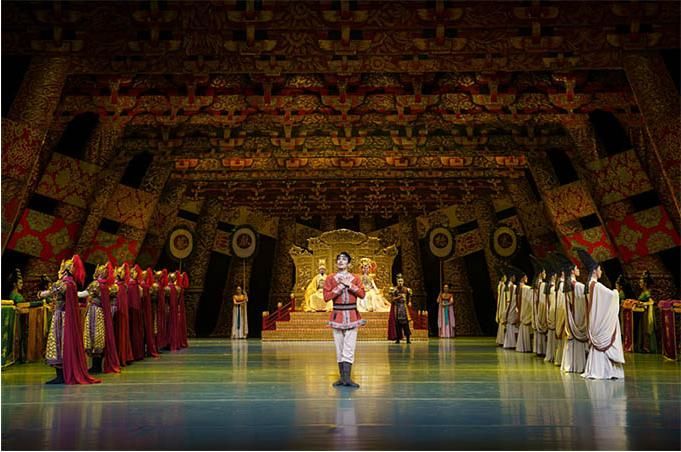“大家可以看到,在這部舞劇中既有非常濃郁的盛唐風(fēng)格,也有非常鮮明的西域文化特點(diǎn)?!蔽鑴 秱鹘z公主》總導(dǎo)演左青表示。舞臺上的每一幕都有情景定位、情節(jié)助推、情感渲染、情調(diào)濡潤,兼具依托文本結(jié)構(gòu)的真情訴說和舞蹈本體的詩意表達(dá),構(gòu)建起舞劇的整體形式感。