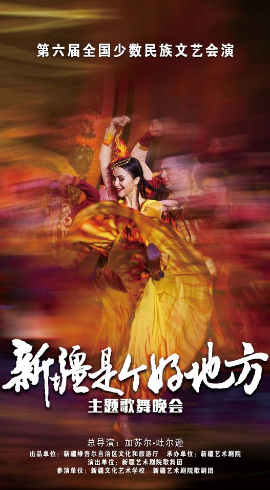 9月11日,由新疆維吾爾自治區(qū)文化和旅游廳策劃指導(dǎo),新疆藝術(shù)劇院統(tǒng)籌打造,新疆藝術(shù)劇院歌舞團(tuán)創(chuàng)作的主題歌舞晚會(huì)《新疆是個(gè)好地方》亮相第六屆全國(guó)少數(shù)民族文藝會(huì)演,在央視網(wǎng)和國(guó)家民委門(mén)戶網(wǎng)站進(jìn)行展播,向全國(guó)觀眾講述了多彩的新疆、團(tuán)結(jié)的新疆、大美的新疆。
