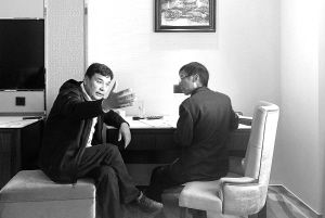 王巨成(右)在采訪庫(kù)爾班·尼亞孜。 王巨成供圖