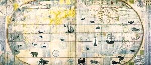 李之藻年輕時(shí)就對(duì)實(shí)學(xué)頗感興趣,曾自行繪制過明朝兩京十三省的地圖。見到利瑪竇用西法繪制的世界地圖后,李之藻敏感地意識(shí)到,這個(gè)地圖的繪制方法與中國(guó)傳統(tǒng)的“計(jì)里畫方”方法不同,是“取天文以準(zhǔn)地度”,用經(jīng)緯度確定地理方位。對(duì)利瑪竇的學(xué)問一見而傾心的李之藻,每天都要到利瑪竇的公寓學(xué)習(xí)地理、天文知識(shí),每次都要花上四五個(gè)小時(shí)。1602年,李之藻與利瑪竇結(jié)合中西繪圖技術(shù),合作繪制了一版世界地圖《坤輿萬國(guó)全圖》,這幅地圖改變了當(dāng)時(shí)通行的將歐洲居于地圖中央的西方繪圖格局,把子午線向西移動(dòng)170度,從而使東亞的中國(guó)居于地圖的中央,并且全圖標(biāo)上了詳細(xì)的漢字標(biāo)識(shí),這是中國(guó)最早的世界地圖。