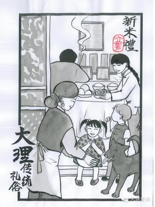 孩子們眼巴巴地看著阿奶阿媽在供桌前擺上已經(jīng)煮好的雞、魚和豬肉,呈上熱騰騰的新米飯,還敬茶、敬酒,跪拜禱告結(jié)束后,阿媽又從甑子里舀出一碗新米飯,拿到院子給大黑狗吃,說大黑看家護院勞苦功高。