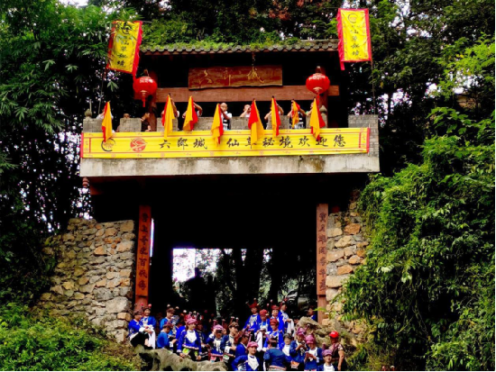 六郎城村屬于喀斯特地貌,四面環(huán)山,山上有整片古木參天的風(fēng)水樹林,山峰外側(cè)懸崖峭壁,山峰內(nèi)部平緩;左邊是陡壁,縱有萬千來犯之?dāng)骋部蓱{借地勢險(xiǎn)要守住,右邊是六郎城,只要在烽火臺(tái)上點(diǎn)燃狼煙,三五分鐘即可就位嚴(yán)陣以待?,F(xiàn)殘存有青石壘砌石墻、戰(zhàn)壕、瞭望臺(tái)、石碉堡、烽火臺(tái)等古遺址,彰顯獨(dú)特的“沙場”韻味,濃烈的英雄氣息和鮮明的民族特點(diǎn)與神秘濃郁的壯族文化習(xí)俗相交融,形成屬于六郎城自身厚重的民間文化。該村自古以來具有樂觀尚上的精神,男女老少擅長歌舞,壯族風(fēng)俗禮儀濃厚,每年六月初三至初九,都要舉辦別具一格的“六郎節(jié)”來祭祀楊六郎,祈求保佑平安、健康、豐收;紅白喜事吹拉彈唱、逢年過節(jié)耍龍、舞獅,跳弄婭歪、銅鼓舞、手巾舞等,其歷史悠久、原始綠色生態(tài)和壯族傳統(tǒng)文化保存得相當(dāng)?shù)耐旰谩?018年,六郎城獲批省級文明村;同年12月,被評為文山州第一批“民族團(tuán)結(jié)進(jìn)步示范村”;2019年底被評為“云南省少數(shù)民族特色村寨”;2020年被評為云南第一批省級民族團(tuán)結(jié)進(jìn)步示范村。
