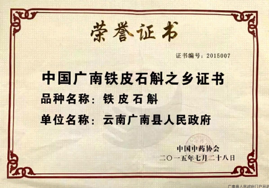 2015年7月28日,廣南鐵皮石斛被中國中藥協(xié)會(huì)授予“中國廣南鐵皮石斛之鄉(xiāng)”證書。(凌埡公司提供)