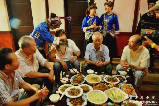 西行音樂公路之旅在享用土司盛宴——“三滴水”后,劇組被壯民族創(chuàng)造的具有深厚民族文化貫穿其中的民族飲食文化所折服,被壯民族熱情好客的情緒所感染。西行音樂公路之旅執(zhí)行導(dǎo)演劉暢說,北京有滿漢全席,想不到在廣南這個(gè)地方也有壯族自己的“滿漢全席”,他說,我和我的小朋友們都驚呆了!