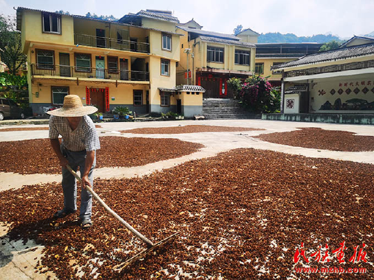 羅運村村民在晾曬八角。