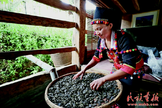 趙臘退的妻子正在制作優(yōu)質(zhì)的德昂酸茶。