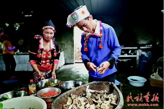 趙臘退辦起了農(nóng)家樂,與妻子一起為客人準備飯菜。