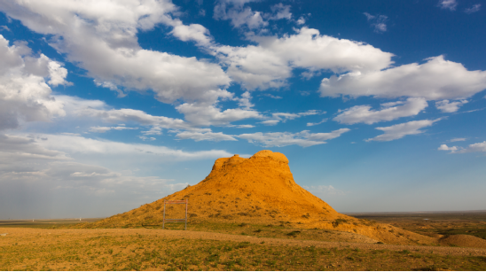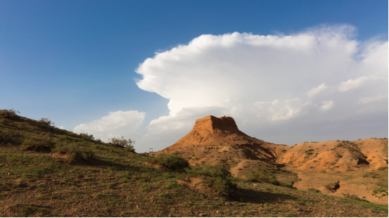(東紅烽火臺(tái),位于海南區(qū)巴音陶亥鎮(zhèn)東紅村,整體為紅黏土夯筑而成,現(xiàn)高9.3米)