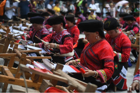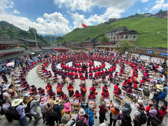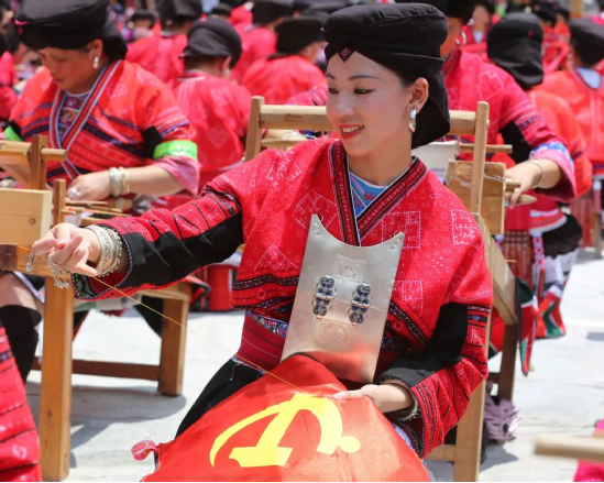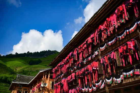 2014年,龍勝瑤族服飾(紅瑤服飾)以其精湛的手工藝和文化底蘊入選國家級非物質(zhì)文化遺產(chǎn)代表性項目名錄擴(kuò)展項目名錄。如今的“曬衣節(jié)”已不僅是紅瑤的傳統(tǒng)佳節(jié),“農(nóng)歷六月六,廣西龍脊看紅衣”等曬衣節(jié)系列活動已成為桂林山水游的一張名片,讓各地游客充分感受多姿多彩的民族風(fēng)情。紅瑤同胞們用自己獨特的方式,為中國共產(chǎn)黨成立100周年獻(xiàn)上自己的祝福。