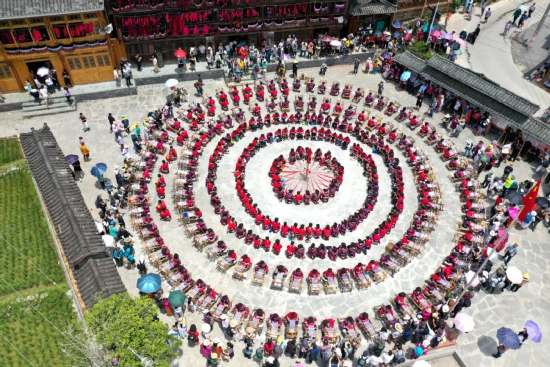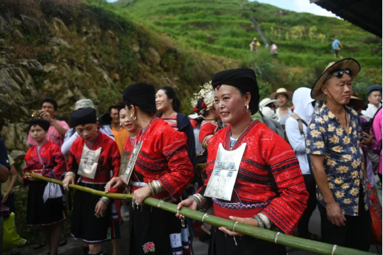 曬衣節(jié)當(dāng)天還進(jìn)行了嗩吶鑼鼓迎賓、瑤嫂長發(fā)梳妝展示、“抬金狗”送祝福、紅瑤服飾加工展示、紅瑤集體婚禮等活動,豐富多彩的民俗文化、濃郁的民族風(fēng)情,讓各地游客流連忘返。