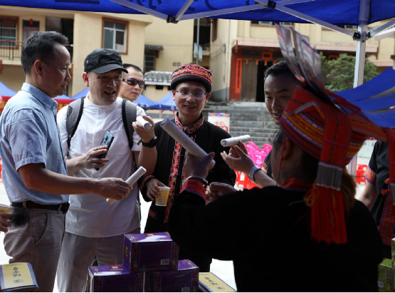 自治區(qū)“非遺”中心領導到瑤族雷火灸銷售攤點了解銷售情況