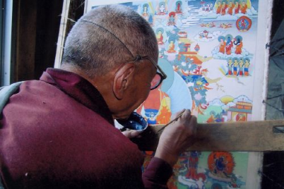 嘎瑪噶赤畫派,屬西藏東部地區(qū)畫派。相傳由郎卡扎西所創(chuàng),與其同時期的八世噶瑪巴米久多吉,奠定了嘎瑪噶赤畫派的理論基礎。十六世紀,嘎瑪噶赤畫派開始盛行康區(qū),先后涌現(xiàn)出了一批大師。嘎瑪噶赤畫派在發(fā)展過程中,由于生存地域與漢地緊密相連,在政治、經(jīng)濟、文化上的交往也相對頻繁,尤其在繪畫方面,多受漢地明代以后工筆重彩畫和四川綿竹木版年畫的影響。嘎瑪噶赤畫派在嚴格繼承傳統(tǒng)繪畫的基礎上大膽創(chuàng)新,吸收漢族畫家工筆重彩之精華,注重抒情寫意之風格;講究色彩對比,結構嚴謹,畫工細膩,最后達到精美絕倫之境界。其總體風格形成了有別于衛(wèi)藏地區(qū)門唐、欽澤兩大畫派的特征。二十世紀初,噶瑪噶赤畫派藝術更為完善和成熟。