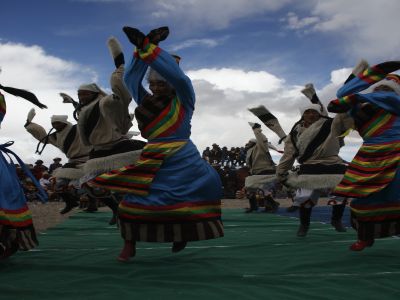 藝術(shù)團(tuán)在湖邊練習(xí)磁石彈舞