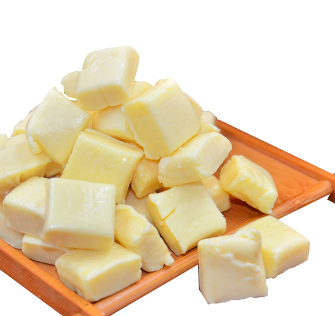 奶油是味美質(zhì)佳的食品,分為白油和黃油。白油的制法是將鮮奶倒入奶桶或鍋、盆中,令其發(fā)酵,脂肪漸漸浮在上面,用勺子撇取即成。這種食品脂肪含量極高,營養(yǎng)豐富,略有酸味,食用時(shí)有一種特殊的清香味。通過白油游客制成黃油。一般是將白油倒入鐵鍋中,用溫火慢慢熬燒,有勺頻頻反動(dòng),當(dāng)水被蒸發(fā)干凈,色澤變微黃時(shí)即成黃油。其味道純香,奶待客之上品。為了食用方便,牧民常把黃油裝在器皿或牛羊胃囊內(nèi)。