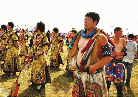 蒙古族流傳著許多傳統(tǒng)的祭祀風(fēng)俗。祭火也稱祭火神、祭灶神,是蒙古族最古老的祭禮活動。蒙古族認(rèn)為火是純潔的象征和神靈的化身,灶火是民族、部落和家庭的保護(hù)神,可賜予人們幸福和財(cái)富,也是人丁興旺、傳宗接代的源泉。因此在每年的臘月二十三(也有在臘月二十四)要舉行祭火、祭灶活動,有時(shí)在秋季或婚禮上也舉行類似的祭祀活動。祭敖包是蒙古民族盛大的祭祀活動之一。敖包是蒙古語,意為堆子或鼓包,被認(rèn)為是氏族的保護(hù)神。多用石頭壘堆在山頂或丘陵的頂部,頂端插有五彩布條和經(jīng)幡。祭祀多在夏秋之際舉行。屆時(shí),蒙古族牧民攜帶哈達(dá)、奶酒、奶食品以及宰殺的牛羊聚集到敖包處。先奉獻(xiàn)祭品。然后由喇嘛焚香點(diǎn)火,誦經(jīng)祈禱,最后人們繞著敖包沿順時(shí)針和逆時(shí)針方向分別走3圈,祈求風(fēng)調(diào)雨順,家事平安。現(xiàn)代祭敖包活動有的還舉行賽馬、摔跤、射箭等文體活動。