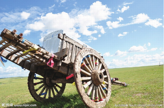 蒙古族牧民常用的一種木制大輪車。多用樺木或柳木制做。車輪高約1米,車身重約百斤,可載重300—450公斤,日行約30余公里。每車用一頭牛來拉,一人可駕馭數(shù)輛,適于在草原、沙漠、雪地等行走。亦可將數(shù)十輛勒勒車首尾相接形成近百米長的車隊(duì),十分壯觀,也形成了草原上特有的風(fēng)情。現(xiàn)在已多被膠皮鐵輪的軸承車所替代。另外還有一種“蒙古轎車”,是一種在勒勒車基礎(chǔ)上經(jīng)過改造專門乘人的車。其與勒勒車不同之處在于車體上有用柳條子彎曲后扎成的車棚,棚子的外面用毛氈包圍,形成一個(gè)既擋陽光,又擋風(fēng)雨,防曬御寒的帳篷。