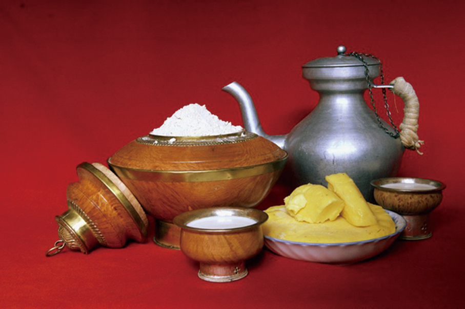 藏族地處高海拔地區(qū),在特殊的環(huán)境下形成了特殊的食材和飲食習(xí)俗。藏族的主要食品是青稞糌粑、牛羊肉和奶制品。這些都是藏區(qū)特有的食品。