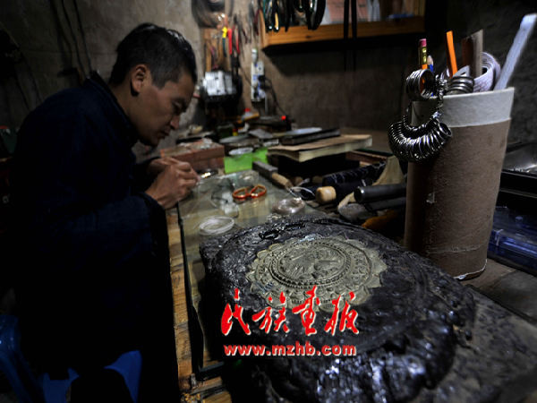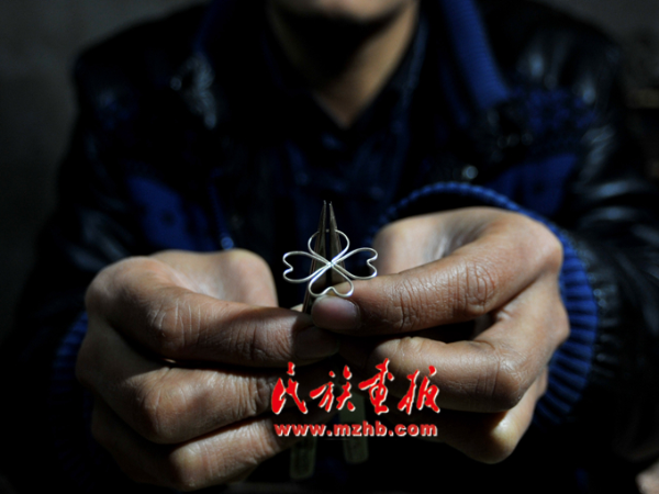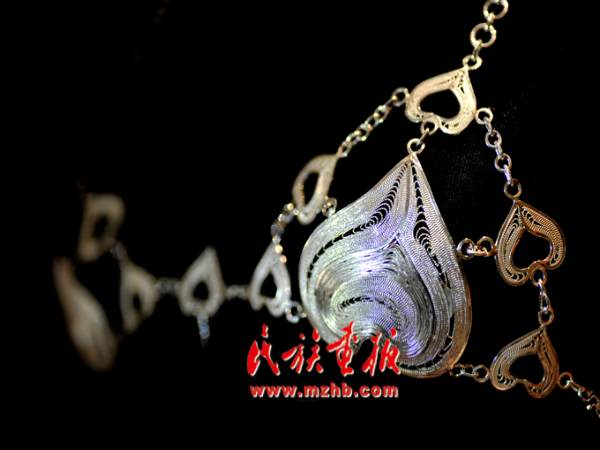 走進龍?zhí)柕拿缱邈y飾傳承工作室,一件件銀飾讓人目不暇接,嘆為觀止??此破掌胀ㄍǖ你y片、銀條,在他的手里富有生命力的藝術(shù)作品,每個制作細節(jié)和過程都透著一股精致。