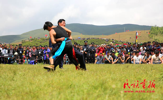 節(jié)日里舉行的彝族式傳統(tǒng)摔跤“格”是全國少數(shù)民族傳統(tǒng)體育運(yùn)動會的比賽項(xiàng)目,很受彝族群眾喜歡