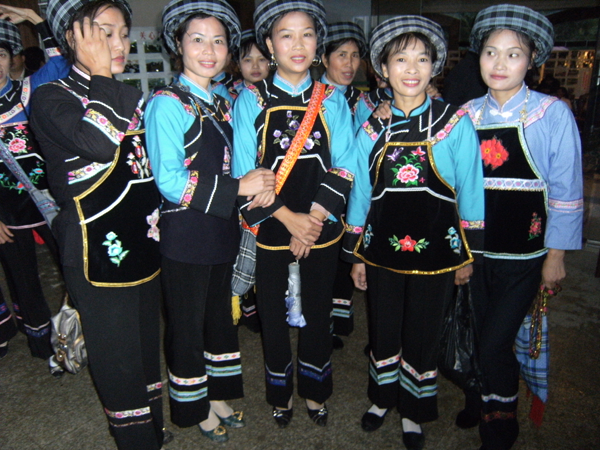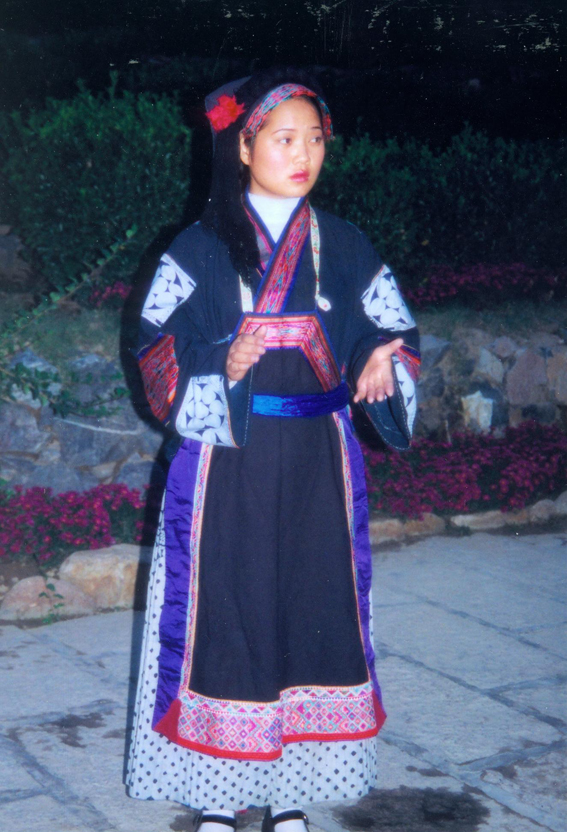 西南地區(qū)的服飾分布地區(qū)包括貴州省黔南布依族苗族自治州羅甸,黔西南州望謨、冊亨、貞豐、安龍、興義、興仁、安順市的鎮(zhèn)寧、關(guān)嶺、紫云三縣的南部以及云南省羅平等縣(市),基本上都屬于布依語第一土語區(qū)。這個地區(qū)婦女普遍穿大襟衣、長褲腳。衣服的盤肩、袖口、襟沿鑲有蘭干。褲腳為大褶邊,或藍(lán)色褲腳鑲一截青布和蘭干。衣服的長短和褲腳的大小,各地區(qū)都不相同。冊亨一帶衣服較短,褲腳短小,包花格長帕,胸頸掛彩珠項(xiàng)圈,手套玉石或骨制手鐲;望謨一帶青年婦女把花格帕折疊后纏戴;貞豐一帶的衣服較長,褲腳不折邊,青年和老年婦女基本相同,但青年婦女包的花帕形狀如牛角(人稱“牛角帕”);靠近北部地區(qū),衣褲都較長,而且不鑲蘭干,衣褲和帕子多為青色;安龍、興義一帶則多包白帕,衣褲亦不鑲蘭干;西南一帶地區(qū)衣褲已漸不鑲蘭干,但還穿自織的土布衣服,頭上還包花格帕,一些地區(qū)與漢族婦女裝束完全一樣了。