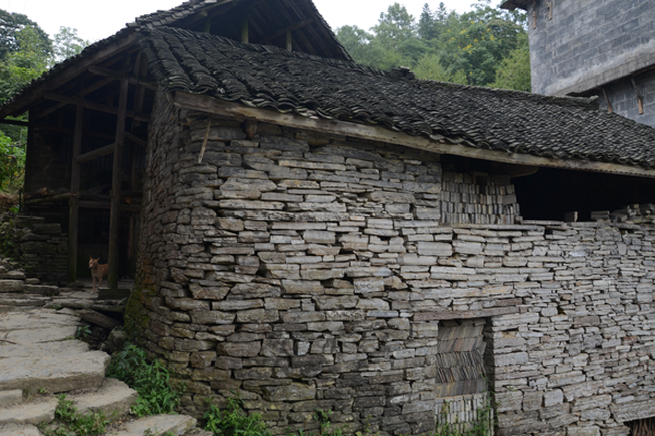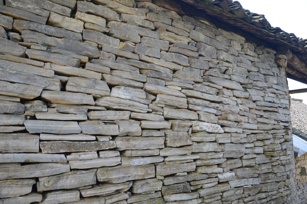 石板房以石條或石塊砌墻,墻可壘至5至6米高;以石板蓋頂,風(fēng)雨不透??傊龣_條、椽子是木料外,其余全是石料,甚至家用的桌、凳、灶、缽都是石頭鑿的。一切都樸實無華,固若金湯。這種房屋冬暖夏涼,防潮放火,相對采光較差。