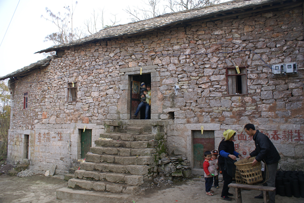“干欄”式樓房分為木質(zhì)結(jié)構(gòu)和木石結(jié)構(gòu)兩種。木質(zhì)結(jié)構(gòu)是布依族傳統(tǒng)的住宅建筑。住宅通體全部使用木材,冬暖夏涼,適宜當?shù)貧夂颦h(huán)境。目前在黔南和黔西南許多布依族聚居地區(qū)都還有保留。近代以來,有的地區(qū)木材逐漸稀少,木石結(jié)構(gòu)就逐漸替代了純木質(zhì)結(jié)構(gòu)的“干欄”住宅,即用石頭砌墻為壁,木料只用作柱子、椽皮和門窗,但基本的上下兩層格局未變。